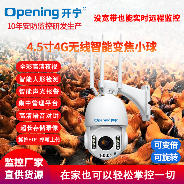 采用開寧4.5寸4G無線智能30倍變焦小球;30倍監(jiān)控專用高清自動(dòng)變焦鏡頭,可拉遠(yuǎn)拉近;水平旋轉(zhuǎn):0°~360°,垂直旋轉(zhuǎn):0°~93°;,4g無線小球水平旋轉(zhuǎn):0°~355°,垂直旋轉(zhuǎn):0°~90°;5顆高效能點(diǎn)陣紅外燈,6顆高效能點(diǎn)陣白光燈,夜視10-100米;