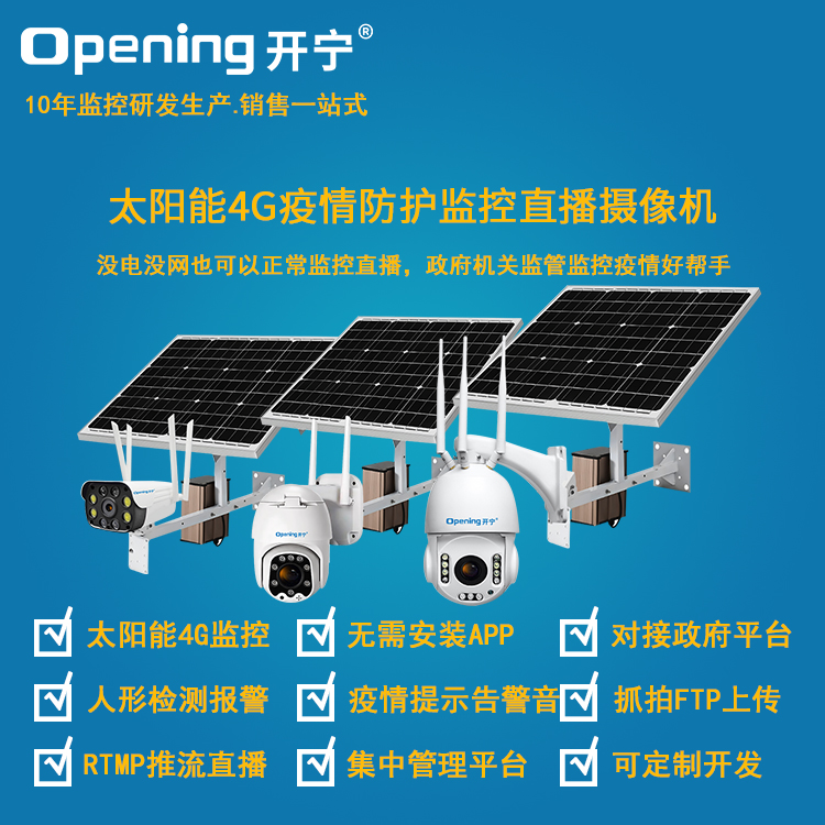 場景二:小區(qū)、村莊等臨時封閉通道、道路,安裝開寧4G疫情防護直播監(jiān)控攝像機,設(shè)置好疫情提示音“為防范疫情,道路暫時封閉,請繞行”,當攝像機觸發(fā)報警的時候,攝像機立即發(fā)出告警提示音,進行提示!
