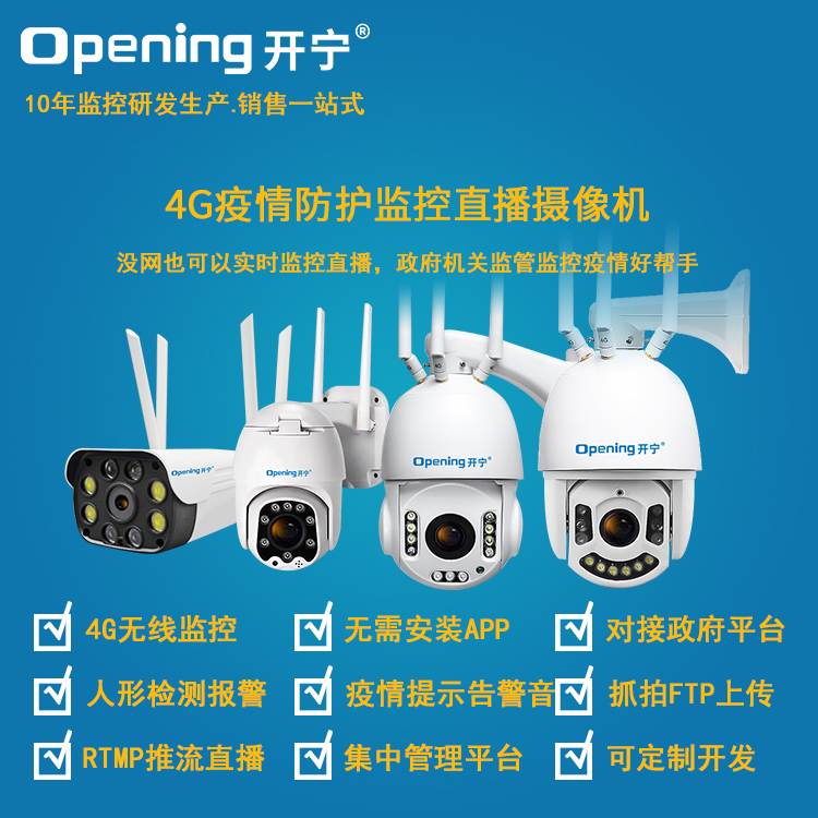 可以根據(jù)安裝場所選擇無線WIFI疫情防護監(jiān)控直播攝像機、4G疫情防護監(jiān)控直播攝像機或者是太陽能4G疫情防護監(jiān)控直播攝像機,適應(yīng)多種環(huán)境場所安裝使用!