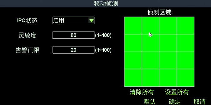 硬盤錄像機(jī)移動偵測報(bào)警功能說明:當(dāng)檢測到所選畫面中有物體移動時(shí),則本機(jī)會觸發(fā)報(bào)警并聯(lián)動輸出。