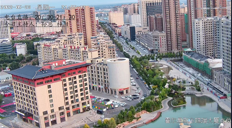 本次霍爾果斯電視臺采用了多臺開寧5G4K慢直播攝像機,在霍爾果斯多個點位進行慢直播,并且在慢直播霍爾果斯城市街景的時候,同時進行電臺直播!
