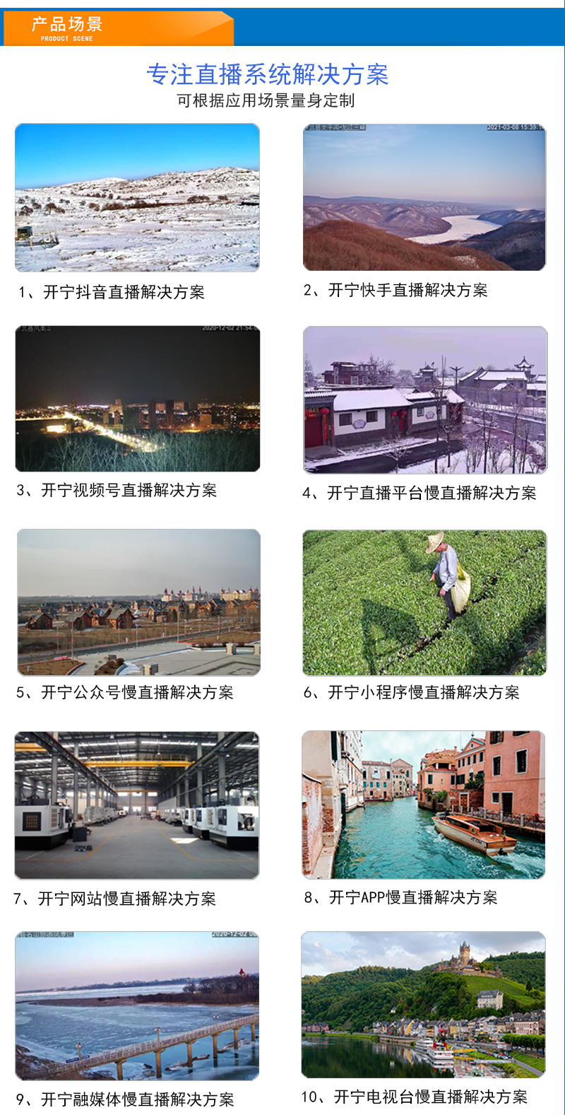 - 1、400萬/500萬/4K800萬/1200萬4.5寸6倍全彩慢直播智能高清球機(jī),一個(gè)球機(jī)就是一套慢直播系統(tǒng);支持360度旋轉(zhuǎn),支持預(yù)置點(diǎn)和巡航,6倍光學(xué)變焦,半金屬外觀,IP66防水等級; 2、不僅可以監(jiān)控監(jiān)管錄像,還可以實(shí)時(shí)慢直播分享創(chuàng)造更多商業(yè)價(jià)值; 3、美景中國.城市慢直播.文旅慢直播.融媒體慢直播.央視頻慢直播.交通慢直播.戶外直播等慢直播 4、無需下載安裝APP,簡單實(shí)用;不限觀看人數(shù),創(chuàng)造更多商業(yè)價(jià)值; 5、RTMP推流直播高清攝像頭;可生成慢直播二維碼,只需掃碼即可觀看慢直播; 6、可接入網(wǎng)站.公眾號.小程序.APP;可對接抖音.快手.視頻號.京東.淘寶.拼多多等平臺(tái); 7、支持GB/T28181協(xié)議;可接公安.食品.工地.生產(chǎn).教育.畜牧.旅游等監(jiān)管部門平臺(tái); 8、支持對接網(wǎng)絡(luò)高清硬盤錄像機(jī)(NVR),本地錄像錄音、集中管理多路視頻畫面; 9、支持定制內(nèi)置插卡和錄像機(jī)硬盤同時(shí)視頻錄像;支持定制POE供電; 10、6顆高效能點(diǎn)陣暖光燈,全彩夜視1-80米;6倍光學(xué)變焦高清鏡頭; 11、內(nèi)置高清保真拾音器,聲音視頻同步慢直播;DC12V供電; 12、免費(fèi)提供集中管理平臺(tái),可實(shí)現(xiàn)集中管理慢直播設(shè)備,有效提高工作效率; 13、慢直播首選4K800萬智能全彩超高清智能球機(jī),美景中國、實(shí)景中國慢直播好幫手! 14、水平360度無限位旋轉(zhuǎn),垂直90度;水平轉(zhuǎn)速40度/秒,垂直轉(zhuǎn)速30度/秒;支持256個(gè)預(yù)置位 8組巡航8組掃描,支持水平掃描,2點(diǎn)區(qū)域掃描,隨機(jī)掃描;