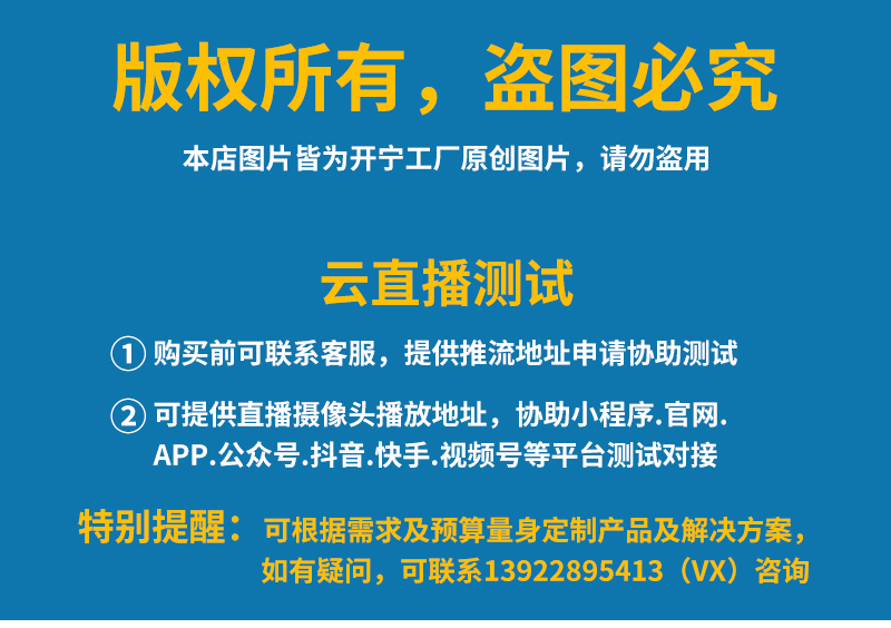 6、可接入網(wǎng)站.公眾號.小程序.APP;可對接抖音.快手.視頻號.淘寶.拼多多等平臺;