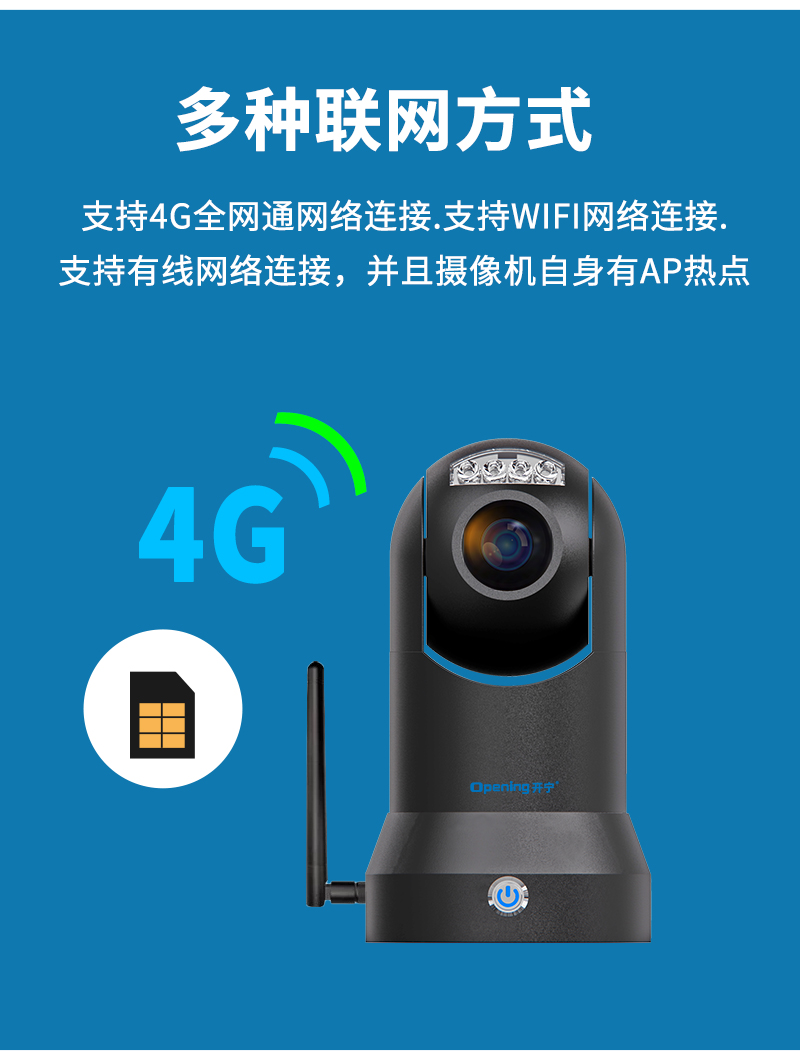 3、支持4G/WiFi/有線連接,沒有寬帶網(wǎng)絡(luò)用4G流量,有寬帶網(wǎng)絡(luò)可用wifi/網(wǎng)線連接;